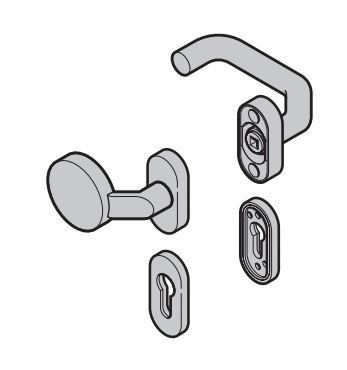 В комплектацию гарнитура ручек не входит четырехгранный штифт для нажимных и разных ручек, а также штифт «антипаника».