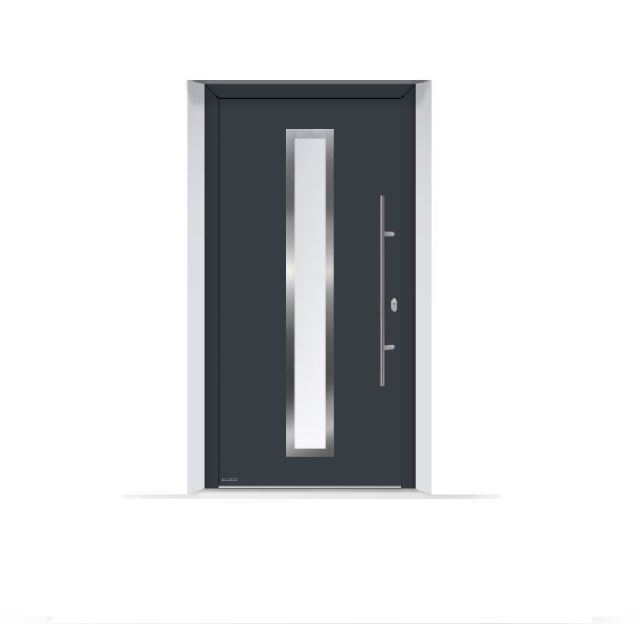 Высококачественная Входная дверь Thermo 65 мотив 700А, DIN R, цвет RAL7016, Hormann оснащена сплошным полотном из стали толщиной 65 мм с расположенным внутри профилем створки и толстым фальцем. Сплошное дверное полотно выглядит с внутренней стороны как межкомнатная дверь и гармонично вписывается в атмосферу Вашего интерьера.