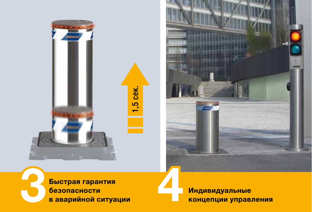 (EFO = Emergency Fast Operation) опущенные болларды, а также въездные, заградительные и шиповые барьеры