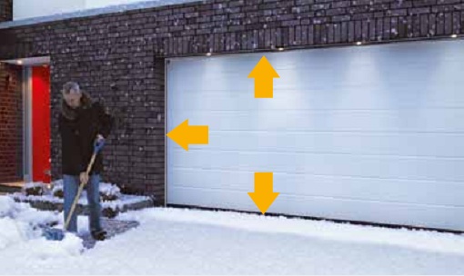 Если гараж является частью дома, мы всегда рекомендуем гаражные ворота с хорошей теплоизоляцией. Благодаря уплотнению направляющей ThermoFrame от Hörmann возможно улучшить и без того хорошие показатели теплоизоляции ворот LPU. Пластмассовый профиль черного цвета, который легко устанавливается вместе с направляющими ворот, обеспечивает