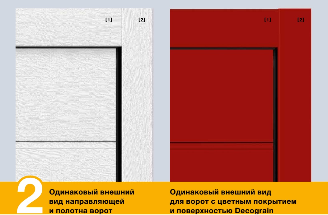 Облицовка направляющих, подходящая к секциям ворот по цвету и отделки поверхности