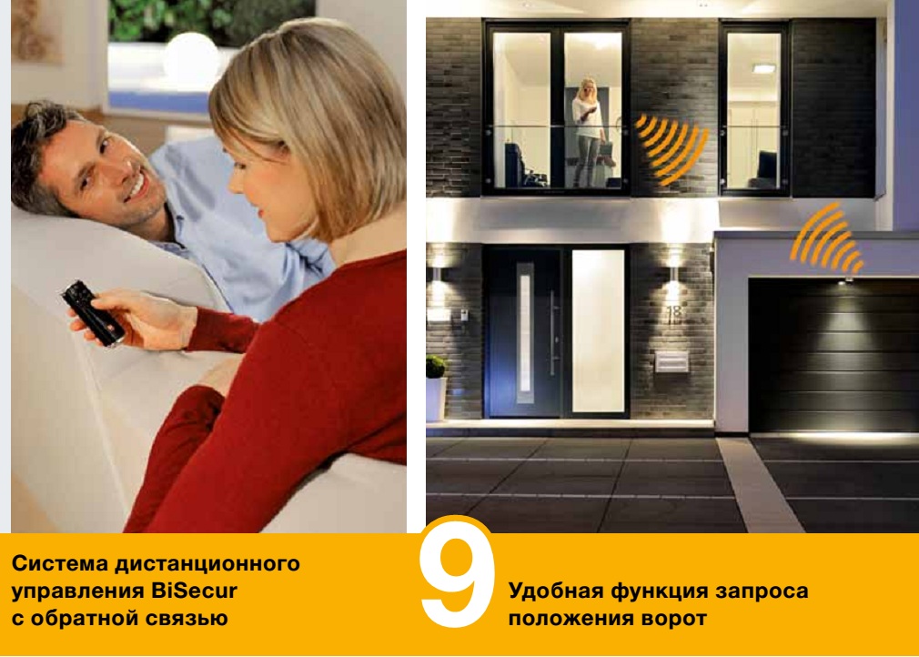 Система дистанционного управления BiSecur, отличающаяся надежной кодировкой и подачей сигнала с обратной связью, представляет собой технологию будущего и служит для комфортного и надежного управления гаражными воротами, въездными воротами, освещением и др.