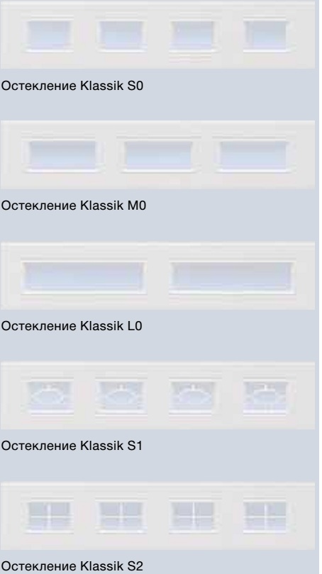 Этот вариант подходит для всех типов ворот и боковых дверей с гофрами M / L и кассетами. Рамы остекления и декоративные перекладины из пластмассы поставляются серийно белого цвета, по желанию – в цвет ворот.