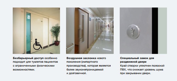 • Дверные полотна долговечны, прочны и легки, их легко открывают даже пациенты.